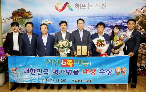 서산시에 따르면 지난 11일 국회헌정기념관에서 서산6쪽마늘이 대한민국 명가명품 대상을 수상했다.