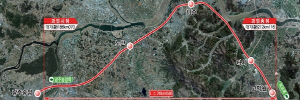 한국철도시설공단(이사장 강영일)은 광주송정과 목포를 잇는 호남고속철도 2단계사업(광주송정∼목포)가운데 광주송정∼고막원 구간 기존선 고속화사업의 노반공사를 14일부터 본격적으로 착공한다고 밝혔다.