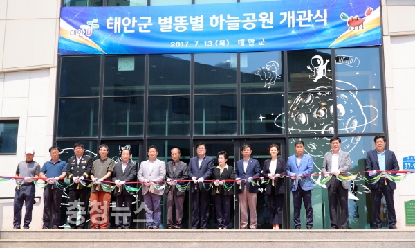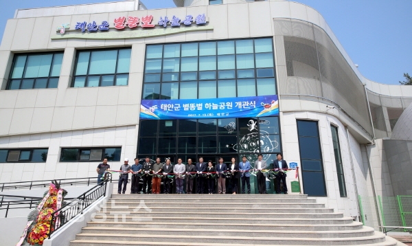 태안군은 지난 13일 남면 별똥별 하늘공원 앞 광장에서 한상기 군수와 이용희 의장, 지역 국회의원 및 도의원, 관계기관장, 지역 주민 등 150여 명이 참석한 가운데 ‘태안군 별똥별 하늘공원’ 개관식을 가졌다고 밝혔다.
