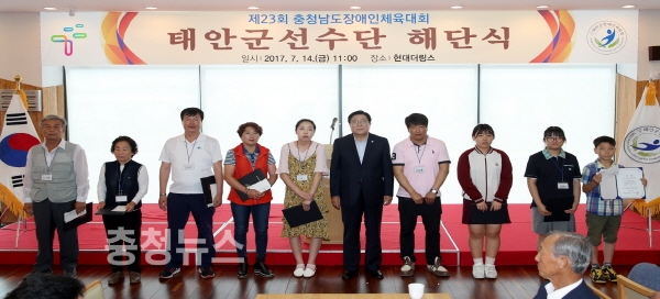 충남 태안군이 14일 태안읍 현대더링스CC에서 제23회 충청남도장애인체육대회 선수단 해단식을 갖고 그동안의 노고를 치하했다.