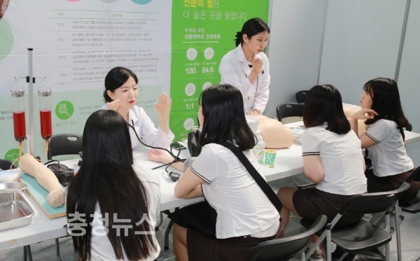 강원도 원주 상지고등학교 송혜령 학생은 “체험전에는 법경찰학과에 관심이 많았는데 간호학과 탐방후 간호사라는 직업에 대하며 정확한 정보를 갖게 하여 간호학과로 진로를 결정하고 준비를 열심히 하겠다”고 말했다.