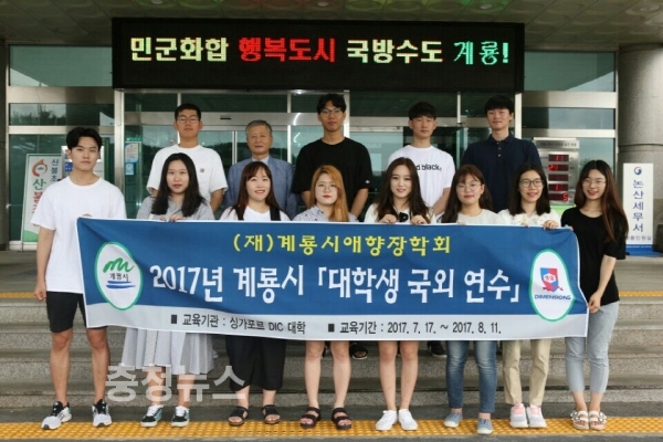 충남 계룡시(시장 최홍묵)는 대학생 국외연수 장학생들이 지난 15일 어학연수 및 현지 체험학습을 위해 싱가포르로 출국했다고 밝혔다.