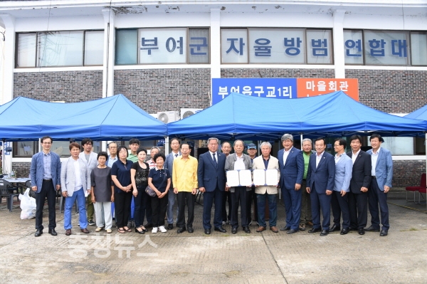 충남 부여군(군수 이용우)은 18일 구교 1리 마을회관에서 이용우 부여군수를 비롯한 마을주민 150여명이 참석한 가운데 구교지구 새뜰마을사업 한어울림 마당행사를 열었다.
