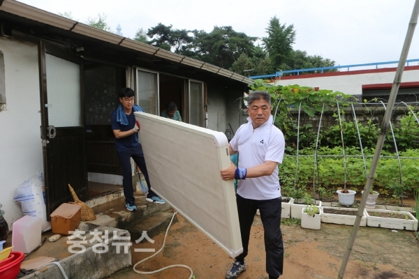 기록적인 폭우로 인한 천안지역의 수해를 복구하고자 천안시의회 의원들도 직접 발 벗고 나섰다.