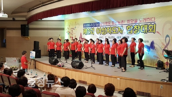농협 충남지역본부(본부장 유찬형)는 (사)고향주부모임충남도지회(회장 임춘숙)와 18일 농협세종교육원에서 충남관내 농업인 300여명이 참가하여 ‘제2회 여성 지도자 합창대회’를 개최했다.