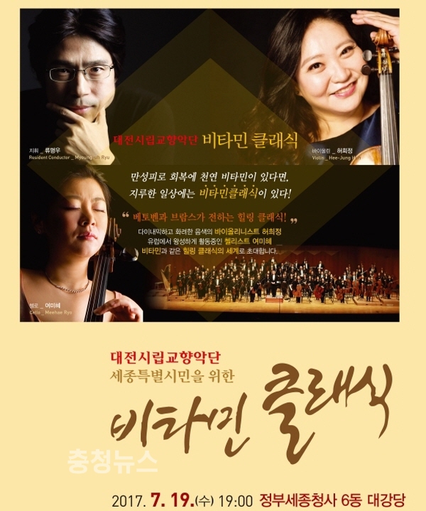 행복청(청장 이원재)은 19일 오후 7시 정부세종청사 6동 대강당에서 대전광역시와 세종특별자치시(이하 세종시)를 잇는 ‘비타민 클래식’ 공연을 개최한다고 18일 밝혔다.