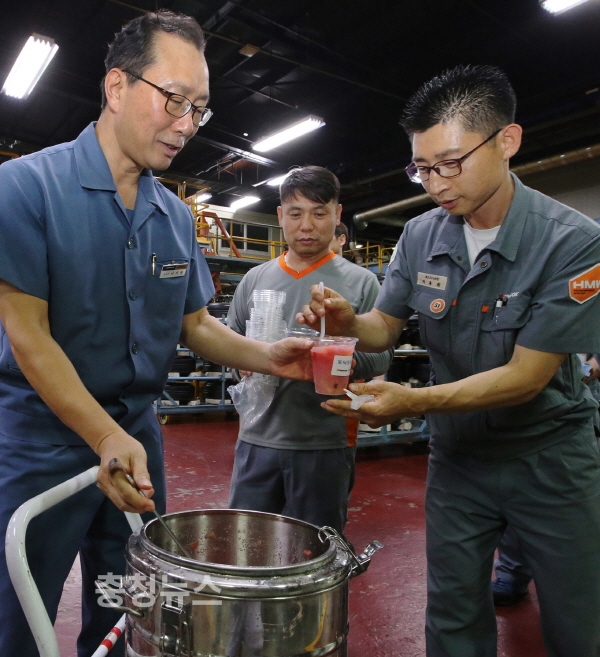 혹서기를 맞아 사원들에게 시원한 화채 등을 제공하는 이번 이벤트는 모두 20여 차례에 걸쳐 공장 별로 각각 진행할 계획이다.