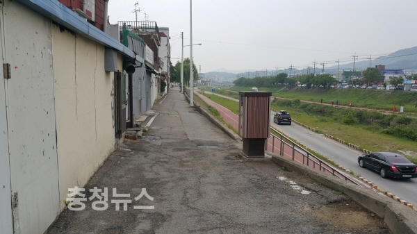 대전천을 따라 펼쳐진 해당 도로는 보행로가 따로 없고 도로 폭이 4m 정도로 비좁은 관계로 보행자들이 차량을 피하기 위해 하천 경계석 위로 통행하는 등 추락사고의 위험이 상존해 있었다.