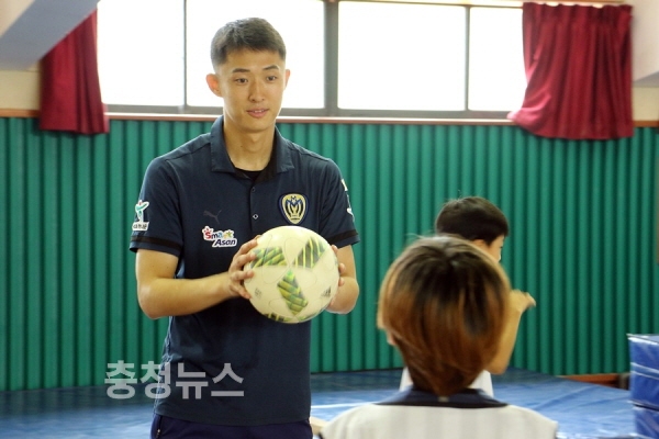 이 날 축구교실에는 아산무궁화의 이주용, 김현, 김종국, 박주원이 일일교사로 나서 어린이들에게 축구의 기본기와 흥미를 유발할 수 있는 훈련을 진행하며 다양한 활동을 진행했다.
