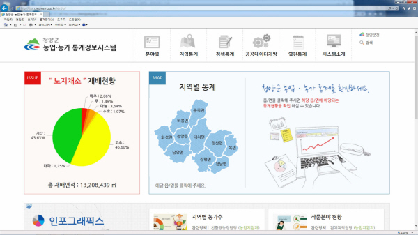 군 관계자는 “시스템 구축 이후 매년 통계조사를 실시, 정확한 정보를 제공하고 있다”며 “농업인이 필요로 하는 공공정보를 적극 공개하고 체감형 농업 정책을 추진해 군정 최우선 목표인 부자농촌을 만들어 나가겠다”고 말했다.