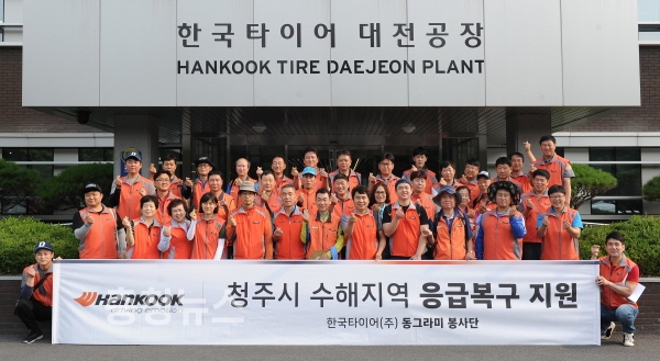 한국타이어(대표이사 서승화) 동그라미봉사단 50여명은 21일 집중호우로 피해를 입은 충북 청주시를 찾아 수해복구 작업을 펼쳤다.