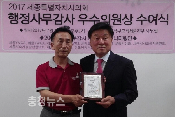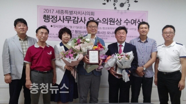 세종시의회 김정봉 의원과 안찬영 의원이 2017 행정사무감사 시민 모니터링단(이하 ‘모니터링단’)으로부터 우수의원상을 수상했다.