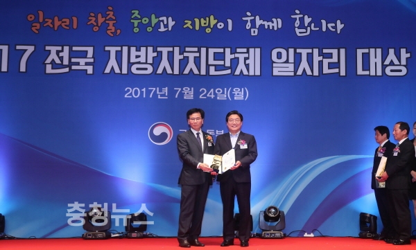 충남 당진시가 24일 중소기업중앙회 중소기업회관 그랜드홀에서 고용노동부 주관으로 열린 2017 전국 지방자치단체 일자리대상 시상식에서 우수상을 수상하며 시상금 9,000만 원을 확보했다.