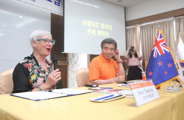 충남 보령시는 지난 22일 머드비치호텔에서 김동일 시장과 뉴질랜드 로토루아 스티브 채드윅 시장 등 관계자 30여 명이 참석한 가운데 뉴질랜드 로토루아 머드파우드 수출 계약을 체결했다.