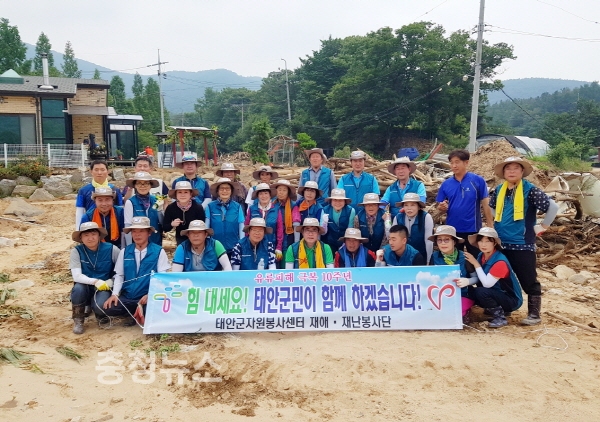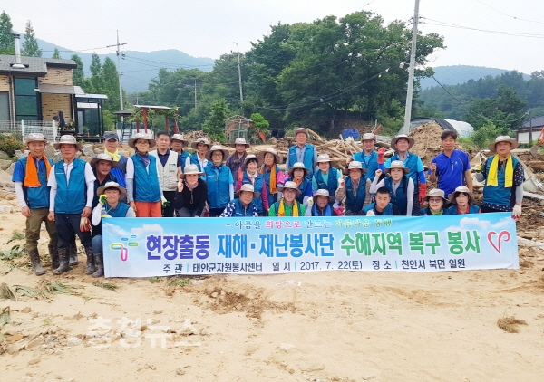 충남 태안군은 지난 22일 천안시 북면 지역에 ‘태안군 현장출동 재해재난봉사단(단장 김정진)’ 회원 및 공직자 등 30여 명을 긴급 파견, 복구를 실시하는 자원봉사활동을 추진했다고 밝혔다.