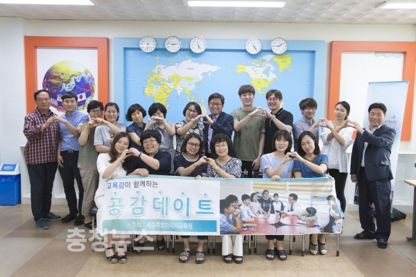 지난 21일 연남초등학교에서 진행된 2017년 제14회 공감데이트도 격식을 차리지 않고 편안한 분위기에서 진행되었으며, 이날 연남초 교직원들은 읍·면 지역 학교의 실질적인 애로사항을 교육청에 전했고, 최교진 교육감은 교사, 주무관, 조리종사원 등의 어려움에 대해 공감하고 현실적인 해결방안들을 제시했다.