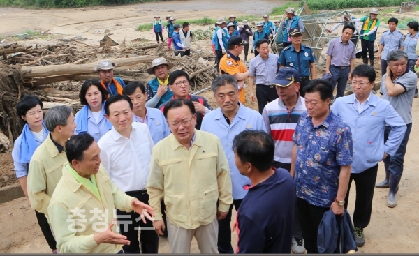 김부겸 행정자치부장관 천안 북면 찾아 수재민을 위로하고 복구 현장 점검