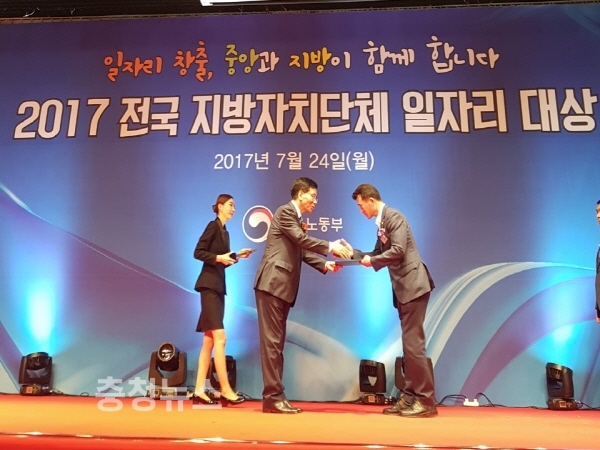 전국 지방자치단체 일자리대상 우수상 수상 장면