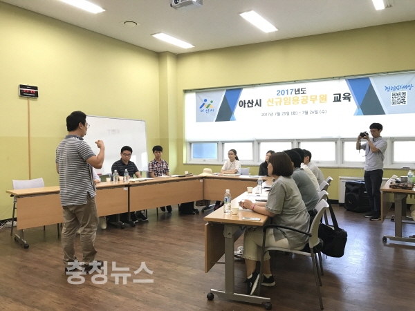 충남 아산시(시장 복기왕)는 지난 25일부터 26일까지 2일간, 청소년교육문화센터 및 아산시 주요 명소에서 2017년도 신규임용공무원 9명을 대상으로 자체교육을 실시했다.
