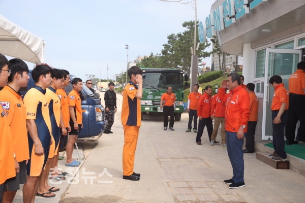 김동일 보령시장이 주요 관광지에서 여름철 피서객들의 안전과 편의제공을 위해 최선을 다하고 있는 기관·단체 현장 근무자와 공직자들의 사기진작을 위해 격려에 나섰다.