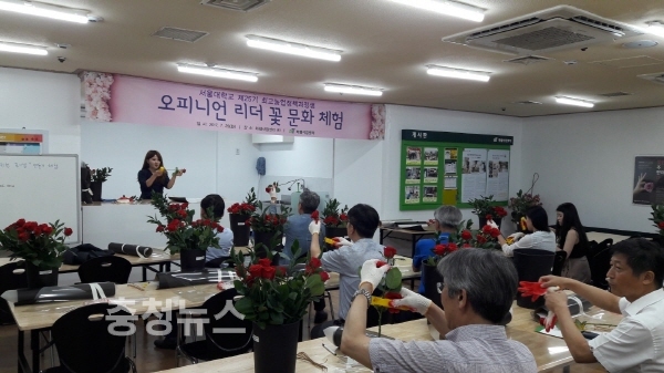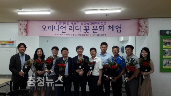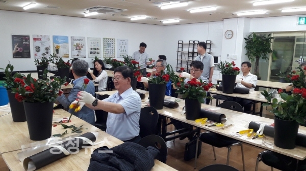 한국농수산식품유통공사(aT, 사장 여인홍) 화훼사업센터는 지난 25일 꽃문화체험관에서 꽃소비촉진과 생활화를 위해 농업관련 오피니언리더와 함께 꽃다발 만들기 행사를 실시하였다.
