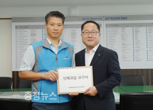 요구서에는 조합원의 기회균등과 차별을 금지하고 관행문화 개선, 내포신도시 이주 지원 등이 핵심이다.