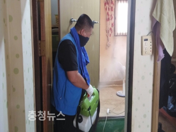 충남 천안시 서북구보건소 감염병대응센터는 침수지역의 감염병 예방을 위한 집중 방역 활동을 펼치고 있다.
