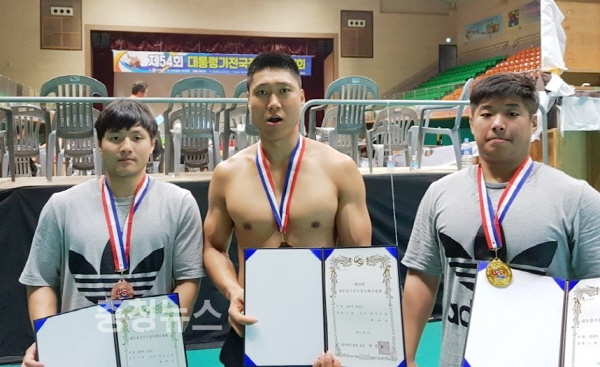 충북 영동군에서 열린 제54회 대통령기 전국장사씨름대회 "!위"차지