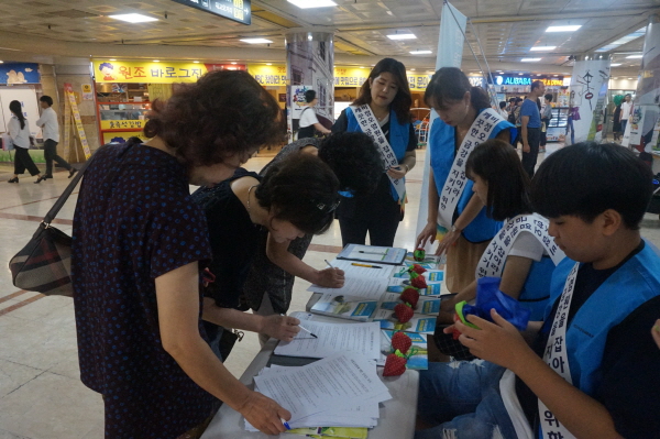 (사)대전소비자공익네트워크(회장 도정자)는 금강유역환경청(청장 이경용)의 후원을 받아 28일 중앙로지하상가(선화동)에서 일반시민 500명 대상으로 ‘깨끗한 금강을지키기 위한 비점오염원을 잡아라! 1차 홍보 캠페인’을 열었다.