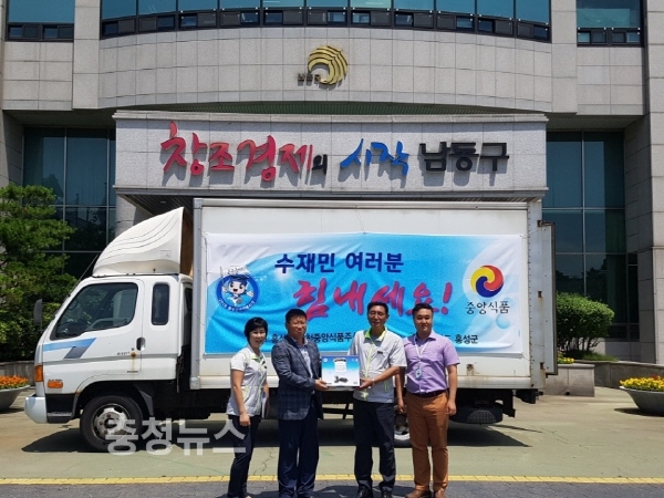 중앙식품(대표 박병도)은 28일 집중호우로 큰 피해를 입은 인천광역시 남동구 수재민 돕기에 써달라며 맛김 1004세트를 다시 한 번 홍성군에 기탁하여 남동구청에 전달했다고 밝혔다.