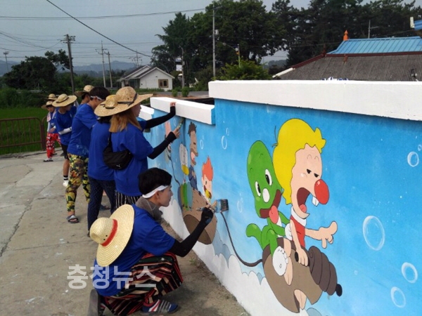 부여에서 마을 벽화그리기 봉사활동