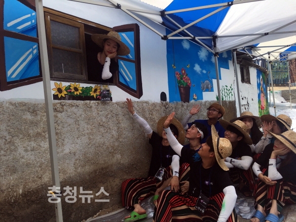 이번 봉사활동에서 학생들은 마을의 주택 담장에 재치있는 그림들을 그려 넣어 조용했던 마을 풍경에 활력을 불어넣었다. 길을 향해 난 창문 주위로 활짝 열린 창문을 그려 놓았는가 하면, 비어있던 담벼락에는 형형색색의 만화 주인공과 다양한 캐릭터들이 자리를 잡았다.