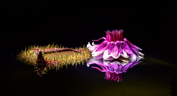 충남 부여군(군수 이용우)의 대표 관광명소인 사적 제135호 궁남지에 빅토리아 연꽃(큰가시연꽃)이 피어나 관광객의 이목을 끌고 있다.