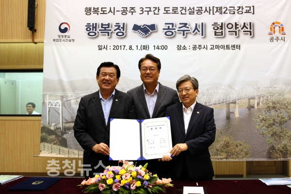 양 기관은 ‘행복도시-공주 연결도로 3구간(이하 제2금강교)’의 원활한 건설을 위한 업무협약을 1일 공주 고마센터에서 체결했다고 밝혔다.