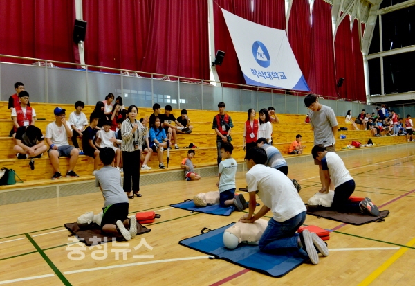 사람을 사랑하는 마음을 배운다는 주제처럼, 심폐소생술을 배우고 있는 참가자들./사진제공 백석대
