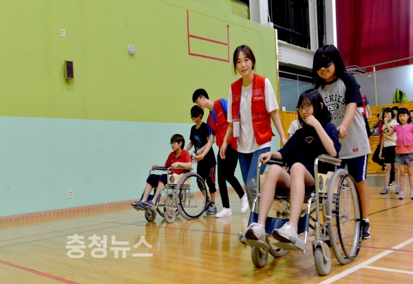사람을 사랑하는 마음을 배운다는 주제와 같이, 장애체험에 나선 참가자들./사진제공 백석대