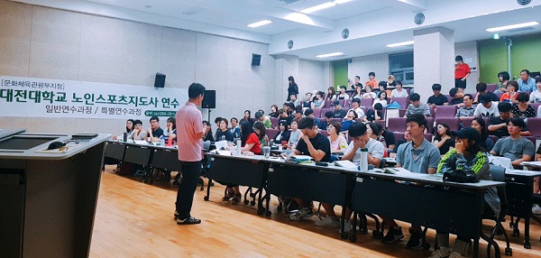 3일 대전대 노인스포츠지도사연수원(원장 김창림)에 따르면 지난달 31일부터 오는 12일까지 대학 맥센터 렉쳐홀에서 ‘2017년도 노인스포츠지도사 연수’를 운영한다.