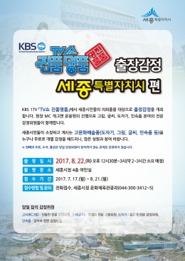 세종시(시장 이춘희)는 오는 21일까지 KBS 1TV TV쇼 진품명품 출장감정 세종시편에 감정 의뢰할 물품을 접수한다.