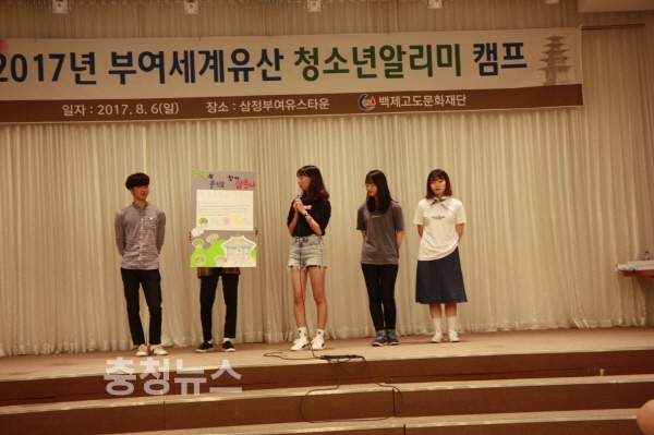 한편, ‘부여 세계유산 청소년 알리미’는 2015년 세계유산으로 등재된 백제역사유적지구를 널리 알리고 홍보하기 위해 부여고 등 관내 고등학생 52명으로 구성되어있으며,