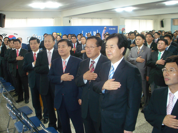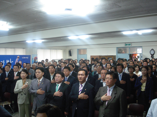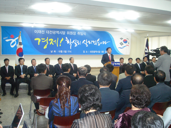 5일 이재선 한나라당 대전시당 위원장 취임식장은 그동안 얼굴 못보던 시구의원들도 보여 대전시당이 화합과 단결로 하나가 되었다고 선언하는 행사였다.