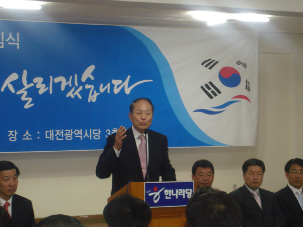 이상득 국회부의장도 “잃어버린 10년을 회복할 수 있도록 국가의 중심인 대전이 한나라당의 승리를 이끌어주기를 바란다”고 축사를 했다.