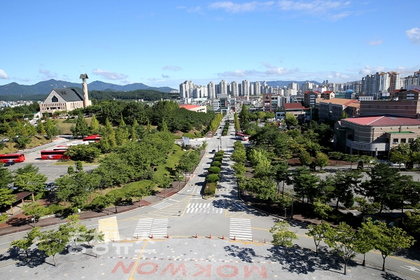 목원대 중앙도서관에서 정문 쪽으로 내려다본 풍경