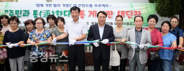 8일 가양2동 주민센터 앞에서는 28개 통 게시판의 새단장을 축하하는 기념행사가 한현택 동구청장, 이한몽 가양2동 MG새마을금고 이사장, 남승도 주민자치회장, 김성자 통장협의회장, 통장, 주민 등이 참석한 가운데 열렸다.