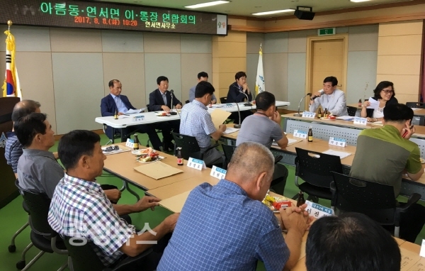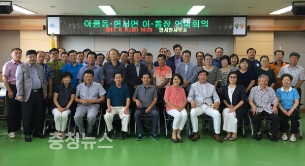 세종특별자치시 아름동과 연서면은 8일 연서면사무소에서 고준일 세종시의회 의장과 이·통장 등 30여명이 참석한 가운데 이·통장 연합회의를 가졌다.