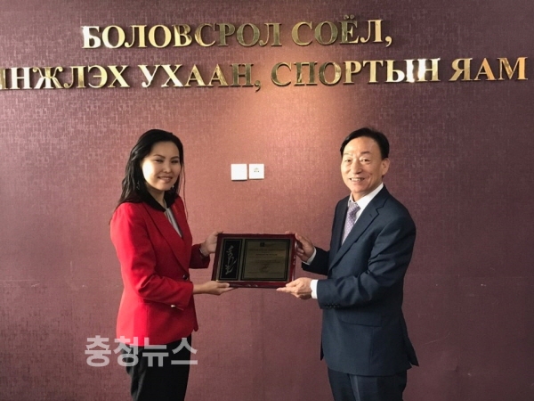 설동호 대전교육감은 지난 10일 몽골 교육문화과학부장관 감사패를 전달받았다.