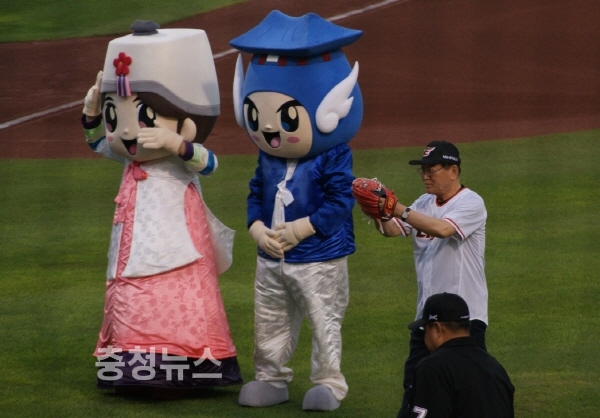 김석환 홍성군수가 11일 대전 한화생명이글스파크에서 열리는 프로야구 한화 이글스 홈경기 시구자로 나섰다.