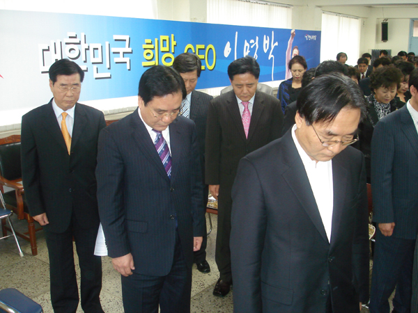 첫째 유권자에게 믿음과 신뢰를 심어 줘야 한다.둘째 경제를 살리고 일자리 창출하기 위해선 이명박 후보가 당선되어야 한다.셋째 죽기를 각오하고 선거운동에 임해 달라고 강조했다.