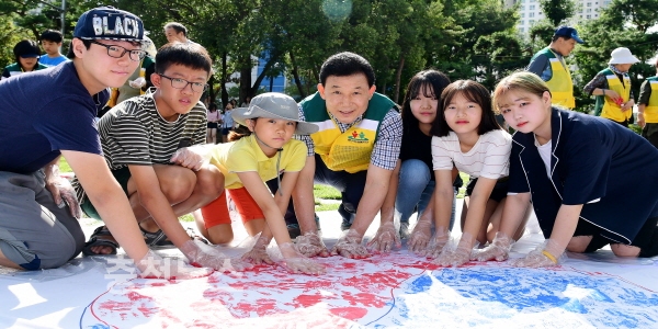 제72주년 광복절 태극기달기 캠페인 모습( 손도장으로 태극기 만들기)