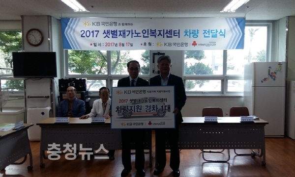 KB국민은행이 지난 17일 (사)대한노인회 대전광역시 연합회 산하기관인 샛별재가노인복지센터 주야간보호실에서 경승용차량 전달식을 가졌다.