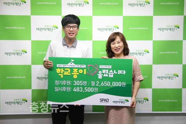 초록우산어린이재단 대전지역본부(본부장 박미애)는 지난 19일 초록우산어린이재단 대전지역본부 회의실에서 SPAD(대전학생회장연합) 6기(회장 대신고3 이우열)와 관계직원이 참석한 가운데 캄보디아 희망학교 건립 캠페인 “학교 종이 울렸습니다 시즌 2 for Char” 후원금 전달식을 가졌다.